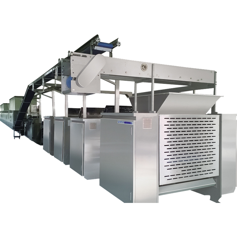 În producția industrială de panificație, lungimea cuptorului tunel și structura zonei sale de temperatură sunt factori tehnici cheie care determină calitatea coacerii. O lungime a cuptorului proiectată corespunzător afectează direct timpul de ședere a produsului în interiorul cuptorului, în timp ce controlul temperaturii pe mai multe zone asigură o distribuție stabilă a căldurii și o formare adecvată a structurii produsului. Bazat pe principiile de funcționare a cuptoarelor tunel, acest articol analizează sistematic relația dintre lungimea cuptorului și timpul de coacere, mecanismele de control al temperaturii pe mai multe zone și adecvarea diferitelor structuri de cuptoare tunel pentru diferite produse coapte, oferind îndrumări tehnice pentru fabricile de alimente care doresc să optimizeze calitatea coacerii.