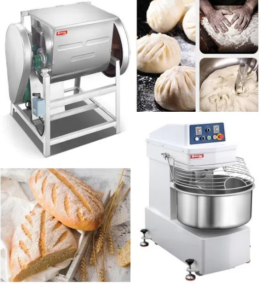 - Dough Mixer: This machine mixes ingredients like flour, water, sugar, and fats into a uniform dough, ensuring consistent quality.